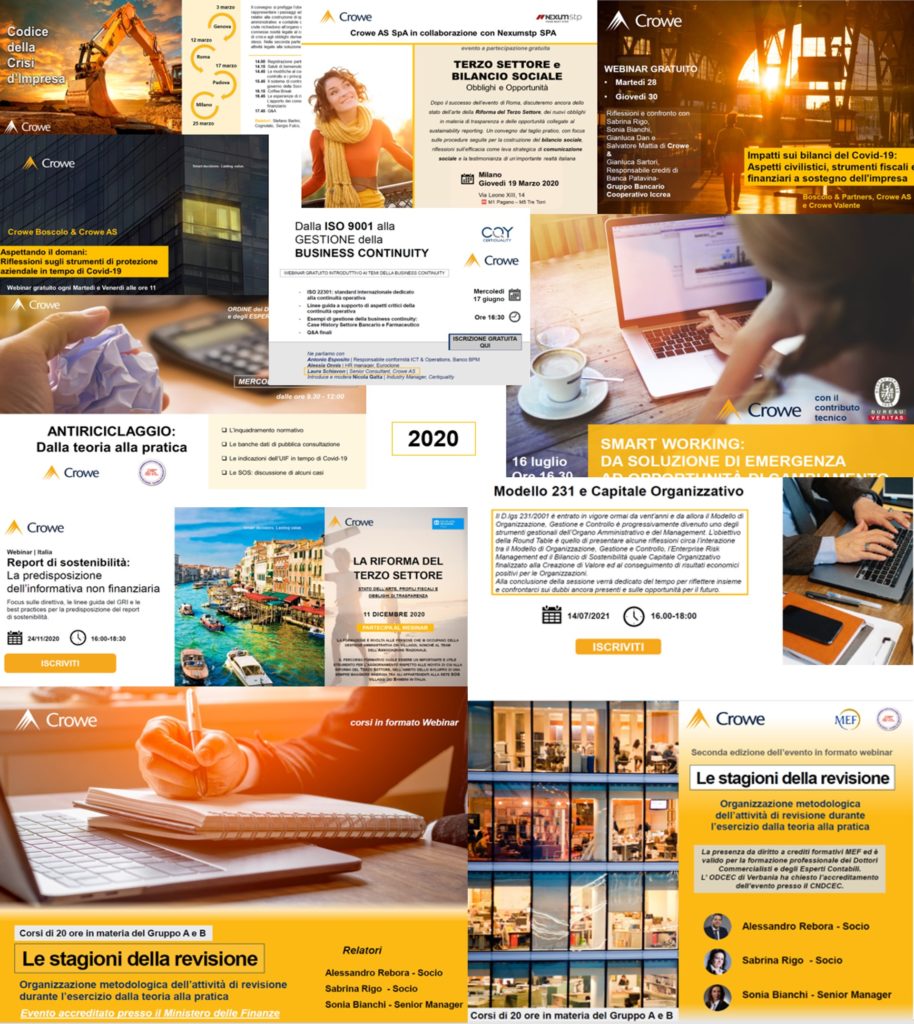 Nel tempo, le attività formative si sono focalizzate sul Terzo Settore, Revisione legale, Corporate Finance, Fiscalità, Antiriciclaggio, Pianificazione Strategica, Valutazione d’azienda fino all’ambito Cybersecurity, Sostenibilità e gestione della Business Continuity.