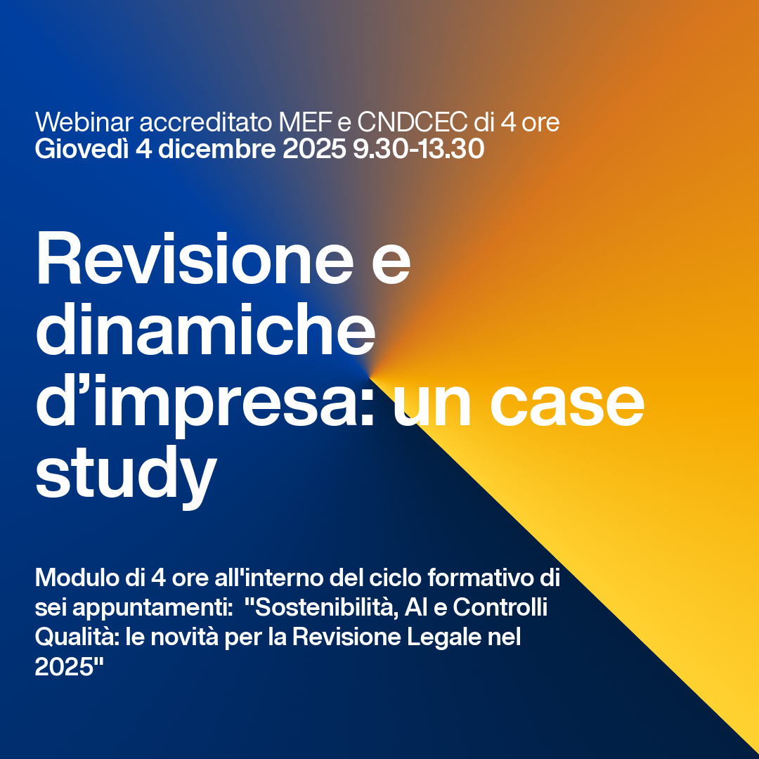 Il webinar fa parte di un ciclo di formazione accreditata di sei appuntamenti “Sostenibilità, AI e Controlli Qualità: le novità per la Revisione Legale nel 2025″.